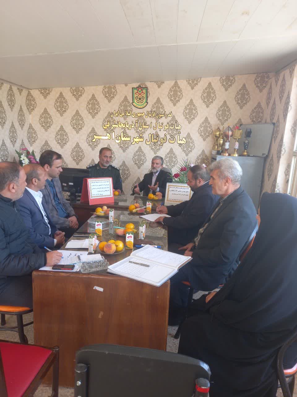 به گزارش سایت رسمی هیأت فوتبال استان آذربایجان شرقی، احد دری مسئول امور شهرستانهای هیات فوتبال استان اعلام کرد؛ بمنظور بررسي عملکرد و رسیدگی به مشکلات فوتبال در منطقه اهر با حضور رئیس هیات فوتبال استان جلسه ای با اعضای هیئت رئیسه فوتبال اهر برگزار گردید.